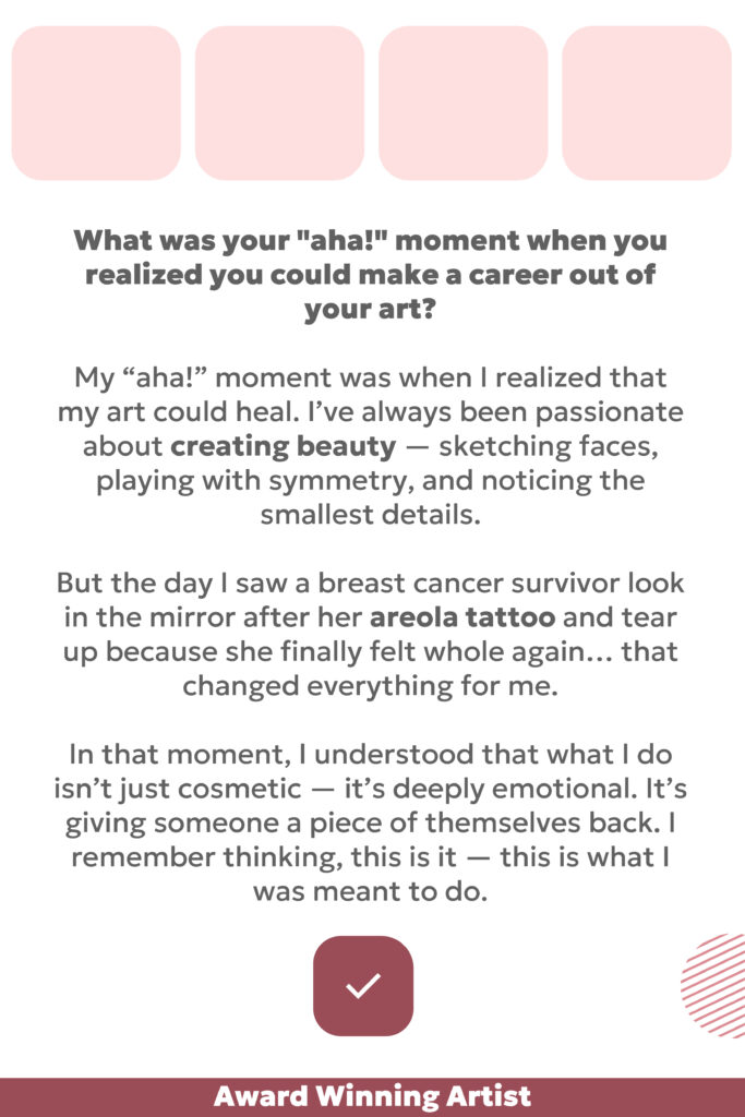 🩷 🎀 🎗️Cara’s journey is one filled with passion, persistence, and extraordinary artistry. Her work speaks to creativity on a deeper level, and we are so excited to share her story, her process, and her remarkable achievements with you.